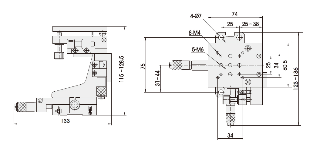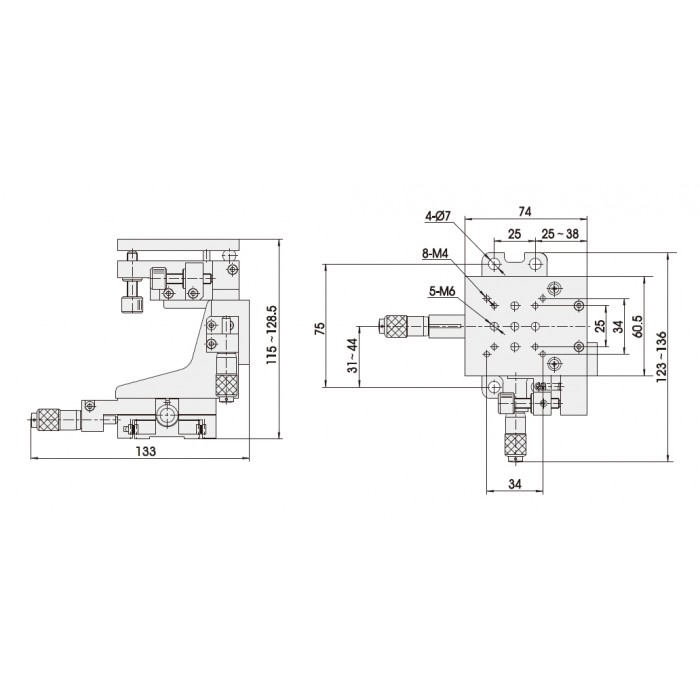 • Micrometer Head in Left Side for X, Y & Z;